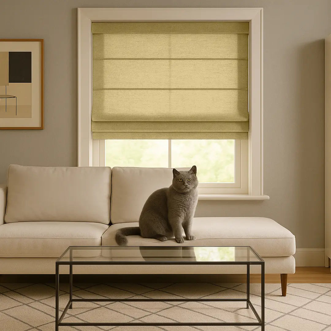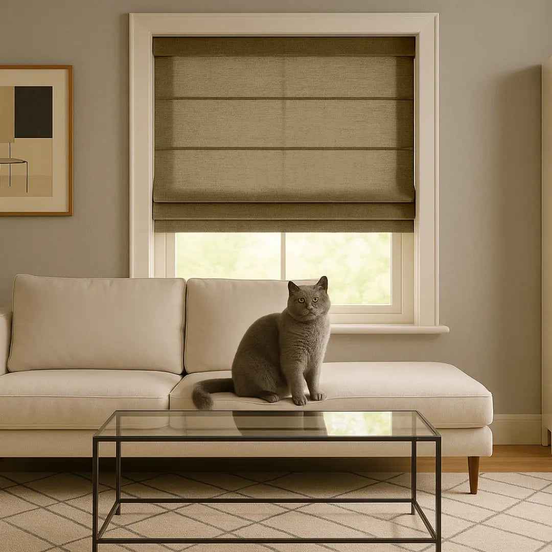 Discover the perfect balance of natural light and privacy with our 1038 Series Light Filtering Roman Shades. Crafted from a premium 350 GSM linen-polyester blend, these custom-made window treatments offer 50% light filtering while maintaining your privacy and adding elegant texture to any room.