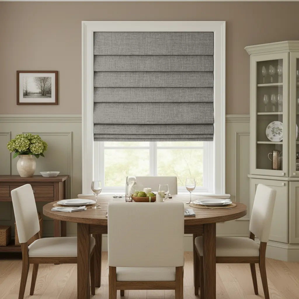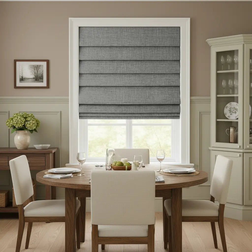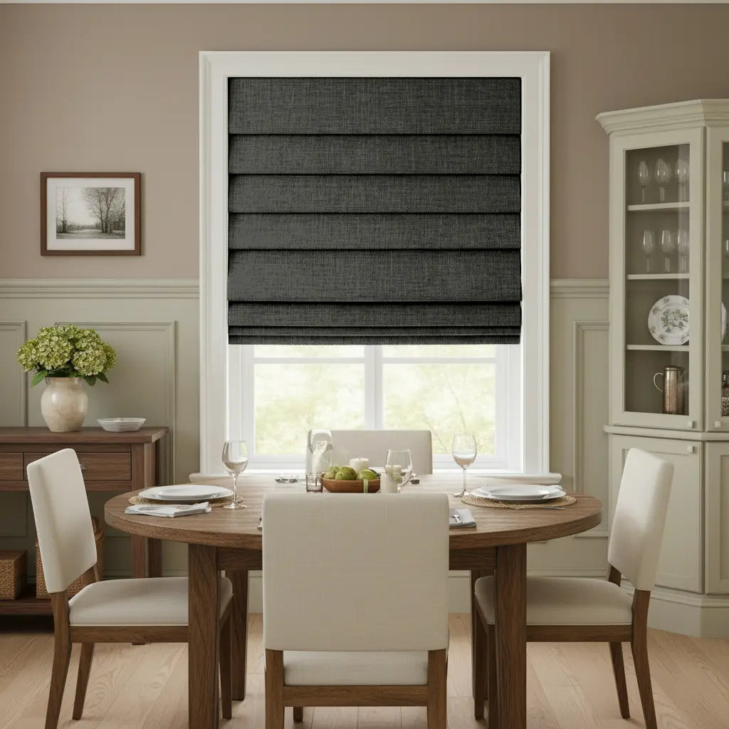 Experience exceptional light control with our 302 Series 100% Blackout Roman Shades. Crafted from ultra-thick 900 GSM polyester fabric, these custom-made window treatments combine elegant linen-look texture with superior blackout performance.