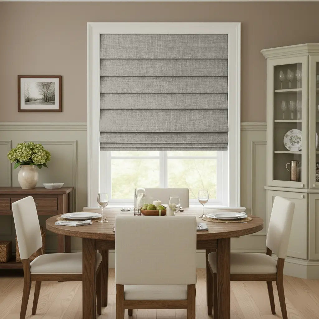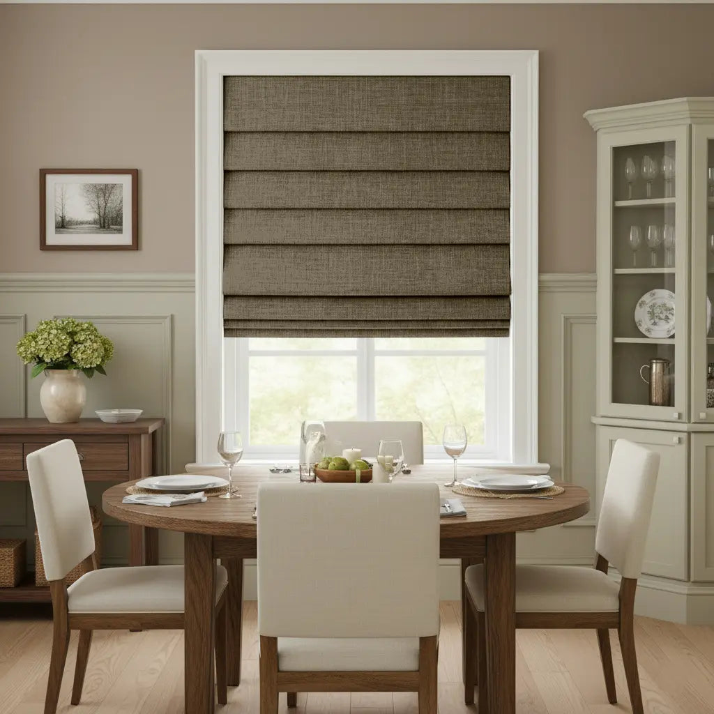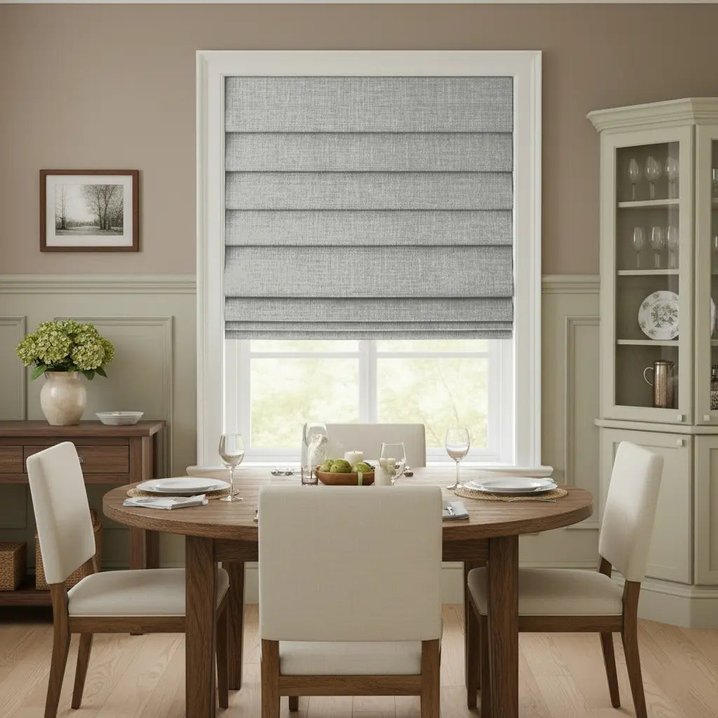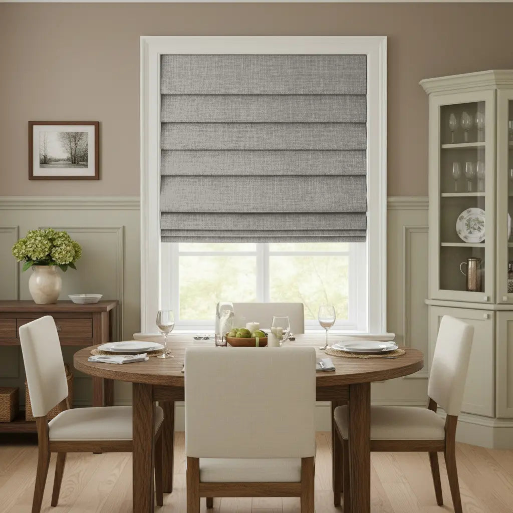 Experience exceptional light control with our 302 Series 100% Blackout Roman Shades. Crafted from ultra-thick 900 GSM polyester fabric, these custom-made window treatments combine elegant linen-look texture with superior blackout performance.