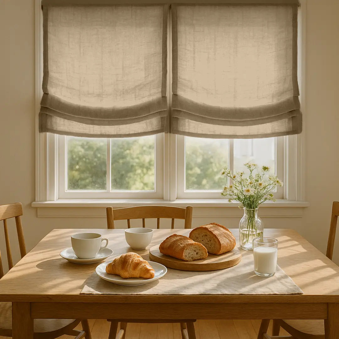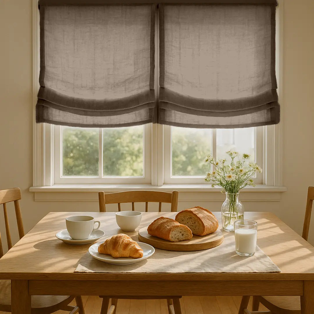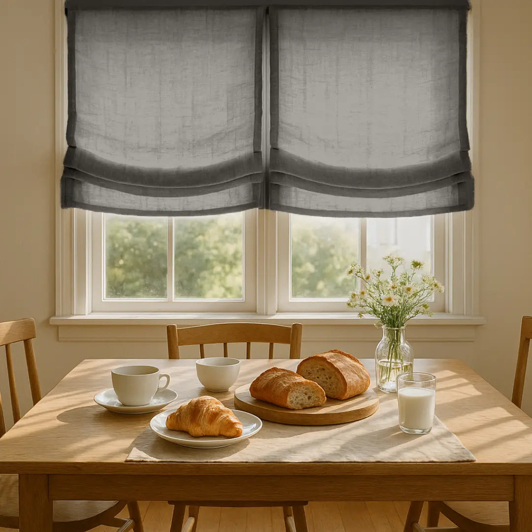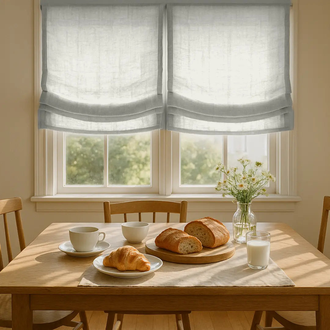 Discover the perfect balance of natural light and privacy with our W1234 Series Light Filtering Roman Shades. Featuring a safe cordless design and crafted from a premium 350 GSM linen-polyester blend, these custom-made window treatments offer 50% light filtering while adding an elegant, natural texture to any room.