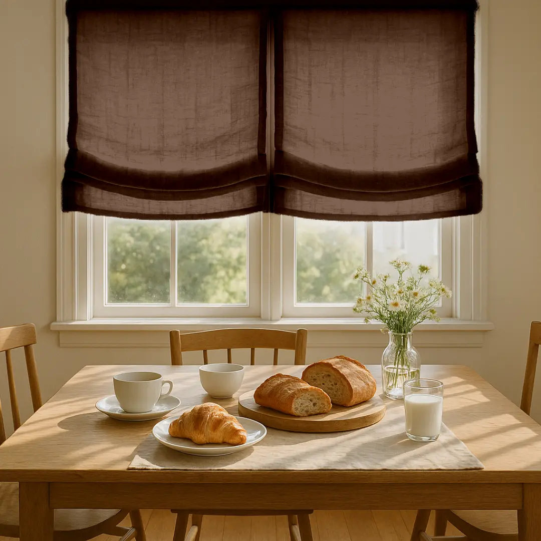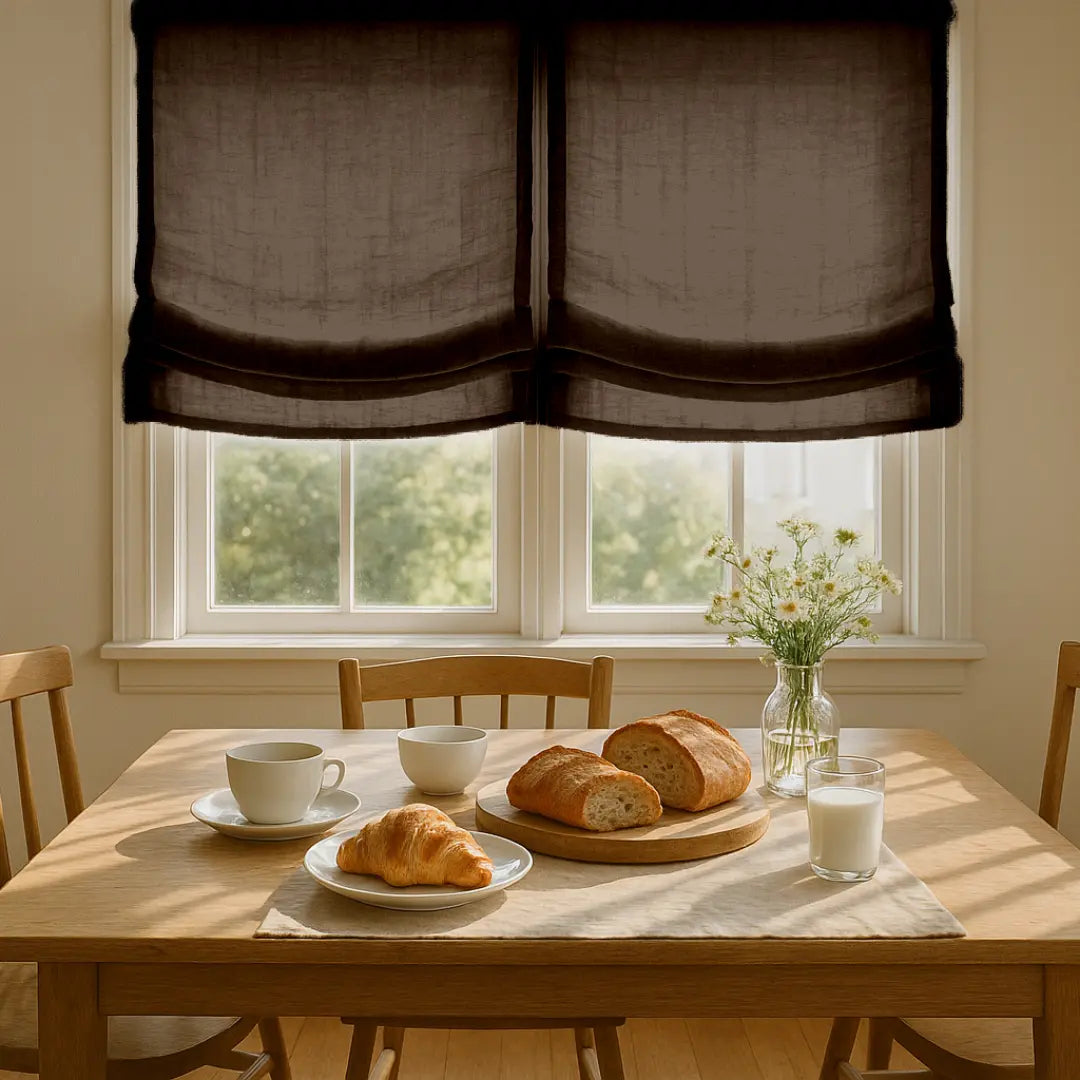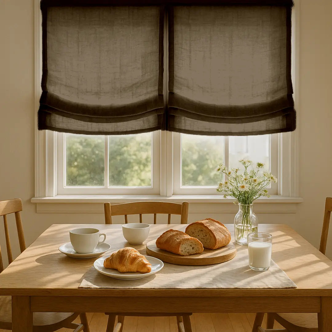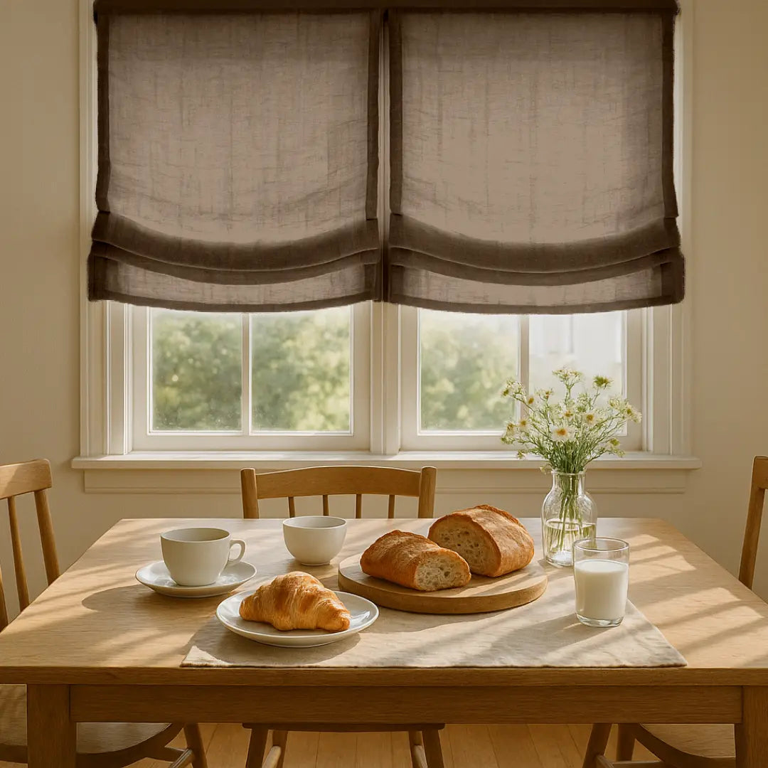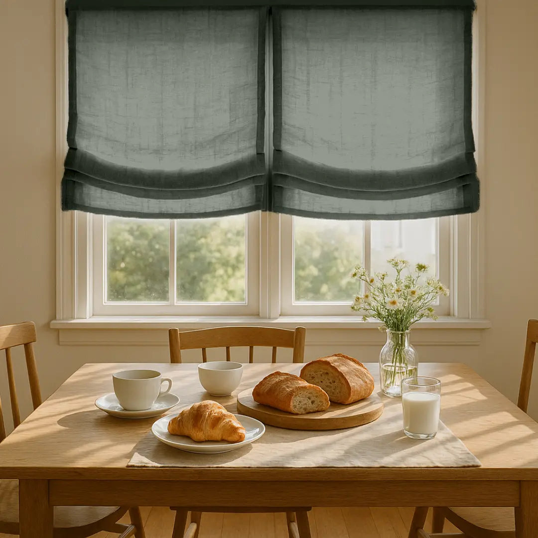Discover the perfect balance of natural light and privacy with our W1234 Series Light Filtering Roman Shades. Featuring a safe cordless design and crafted from a premium 350 GSM linen-polyester blend, these custom-made window treatments offer 50% light filtering while adding an elegant, natural texture to any room.